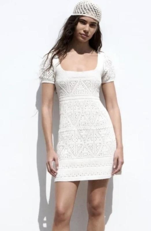 🌿белое плетеное платье от Zara с подкладом Размер:М Замеры:ПОГ 40 см, длина 86