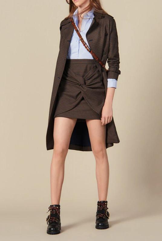 Sandro SFPRO00506 - размер 36❌️и 38✅️ Ефект 2 в 1 Верхняя часть рубашка из поплина и короткая юбка в мелкую клетку. Классический воротник. Драпированная юбка спереди Верх 100% бавовна низ 69% полиэстер, 30% вискоза, 1% эластан 7600035965331