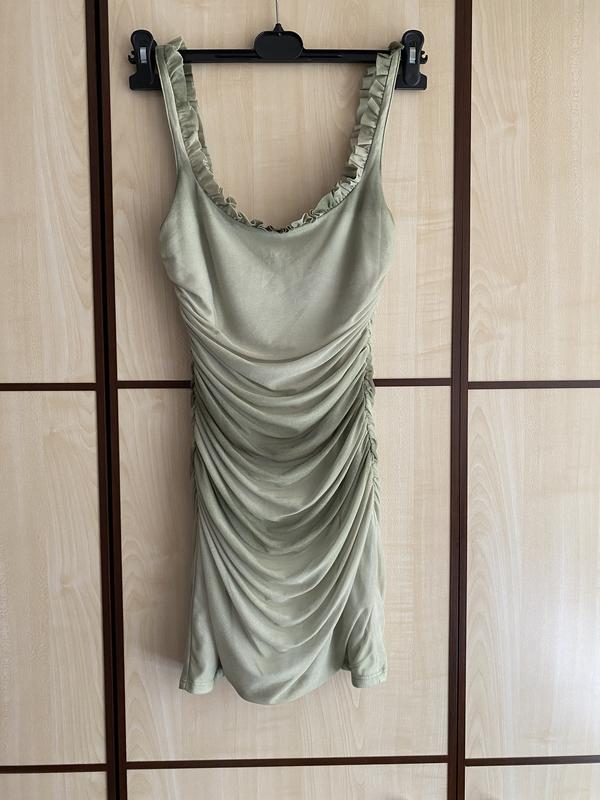 Мини платье с подкладкой. Длина 80, по груди 35, тянется до 42, по талии 26, тянется до 33, по бедрам 36, тянется до 43 см. Состояние нового, без каких либо нюансов