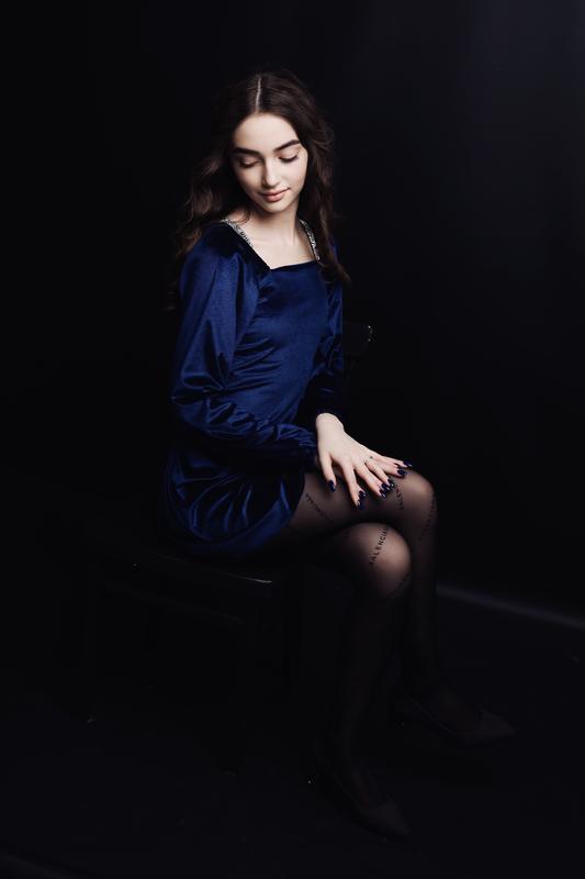 Тканина: Оксамит • Розмір: 42-46 універсальний Колір: синій Дуже красива стильна сукня, ідеальна посадка, довжина міні Позаду регулюється спинка на атласних завязках