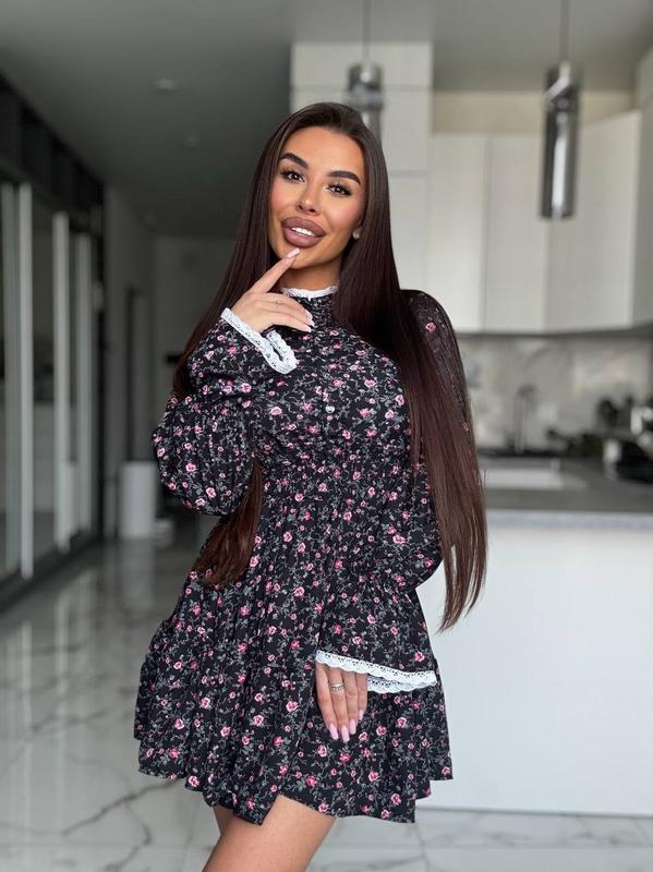 Получили в кількості ☑️ Модель 119 Реальні огляди 🫶🏽 ▫️Розмір : 42-44, 46-48 ▫️Тканина: софт+мереживо ▫️Колір : чорний , білий , шоколад , чорний у жовту квітку , чорний у рожеву квітку Ціна 1100грн Чудова, невагома сукня яка підкреслить твою талію😍 Застібається на ґудзики під шию , на стійці та рукавах мереживо 💗 (#склад197) #женское