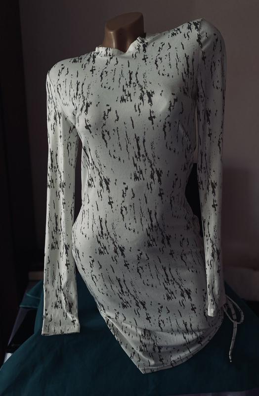 Красивое платье в рубчик, с одной стороны стягивается шнуровкой.