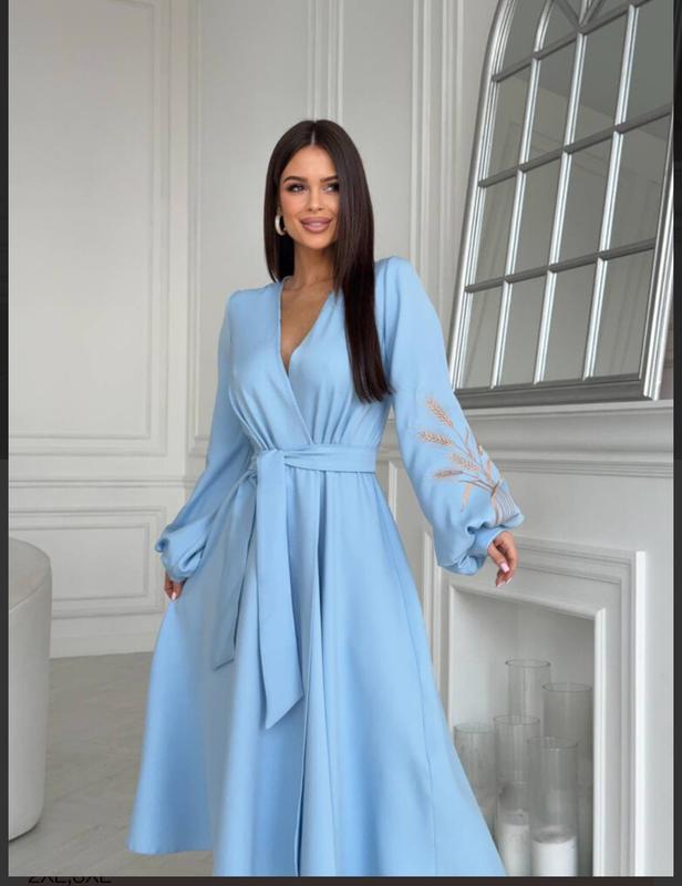 Сукня на запах з вишивкою Модель 7507 Розмір S(42),М(44),L(46), ХЛ(48) 2XL,3XL Виш Тканина: костюмка Довжина: 117 см Довжина рукава: 67 см Кольори: зелений, чорний, молочний, блакитний
