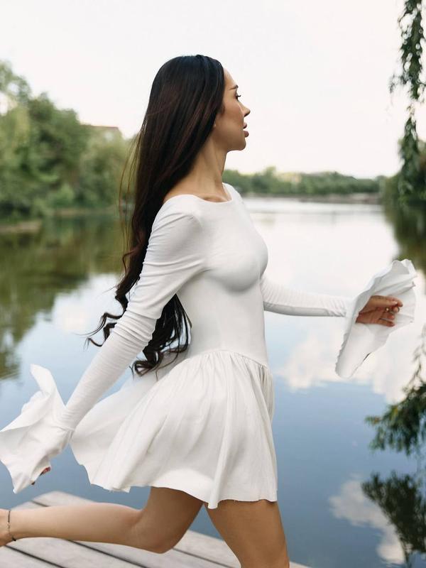 Новинка ✔️Сукня ✔️Мод.inna ✔️Размер:42-44,46-48 ✔️Ткань: микро дайвинг ✔️Цвет: белый ✔️Цена: 1555 грн вместо 1888 грн Это не просто платье - это вызов. Открытая спина, объемные рукава и смелый крой создают образ, в котором невозможно остаться незамеченной. Этот лук – для тех, кто диктует свои правила.
