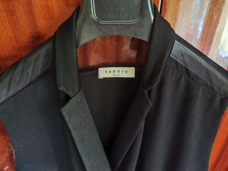 Маленькое черное платье-пиджак от SANDRO Paris. Размер S. Стильная и сексуальная модель, украшенная прозрачной сеткой в области плеч. Платье от SANDRO сочетаю элегантность и минимализм. Материал- ацетат, полиэстер. Без следов носки