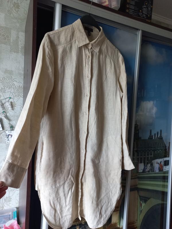 платье в красивом состоянии, льняное, внизу есть разрезы, имеющиеся карманы, можно носить как платье, или длинную рубашку, рукав захочется до 3/4 и фиксируется на пуговицу, почти не ощущается на теле, подойдет на размер XS, S, M, возможен торг