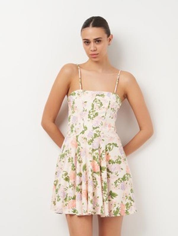 Шикарна жіночна сукня в квітковий принт від Zara (реальний колір квітів на перших фото) ідеально моделює фігуру та підкреслює талію має якісний підклад тканина щільна, не просвічується наявності S S(пог-39,талія-35,стегна-свободно,довдина-65)