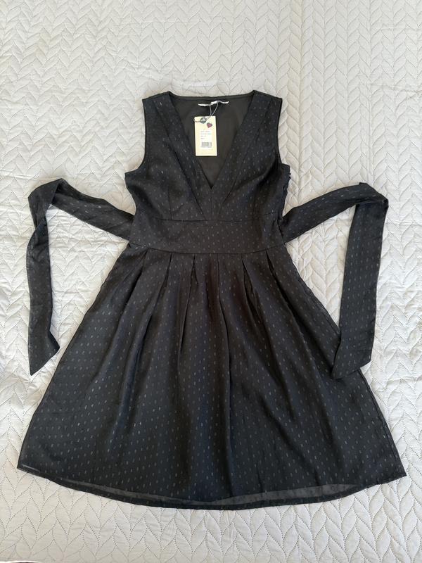 Нова сукня без рукавів з v-подібним вирізом з поясом на завʼязку yumi s чорна