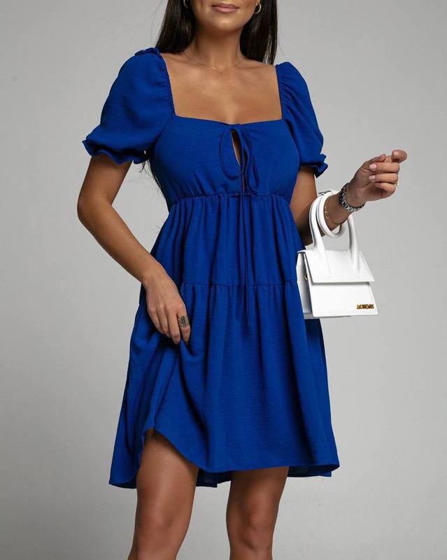 ✅Цвета в наличии: Электрик S Беж S Белое S Платье №2214 Размеры-S Ткань-креп жатка(20% коттон;80% полиэстер) Резинка на рукавах и под грудью Размер S Объём груди 88-96 Длина 90