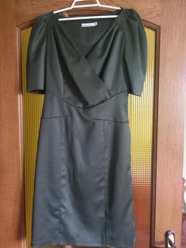 38/М/46 Платье из атласа на подкладке. колеир-изумрудный. длина-90 застежка на боку. рукав короткий с защипами. на плечах украшена накладкой. Платье под пояс.