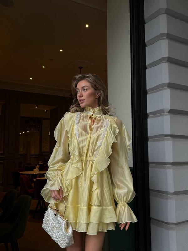 Сукня рюша🌸 ▫️ціна 2600 грн. ▫️Розмір : XS-S , M-L ,XL ▫️Довжина рукава 71 см. ▫️Плечо 10 см. ▫️Тканина: тенсель + французьке кружево ▫️Якість люкс👌🏼 ▫️Колір: молоко, лимон, пудра,блакитний Арт.sol