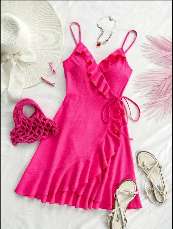 Летнее "жатое" платье яркого розового оттенка. Размер С-М, регулируется завязками. Состояние: новое, не присоединилось за фасоном.