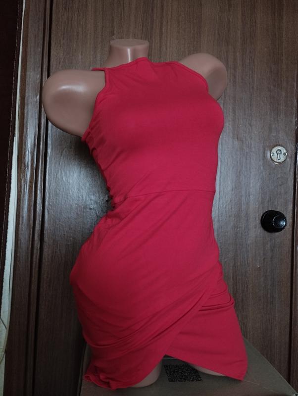 Платье майка на запах приталенная мини яркая красная сексуальная