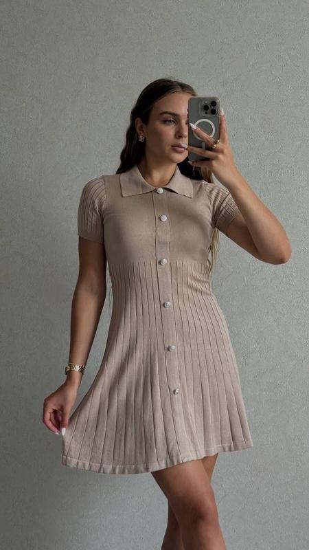В наявності Сукня Жіноча облягаюча сукня, виконана з трикотажу з короткими рукавами з ґудзиками спереду Модель: 8147/64 Ціна: 4850 грн Склад: трикотаж Виробництво: Китай Розмір: універсальний (42-46) Виміри виробу Довжина 90 см ОГ 80--110 см ОТ 60-80 см ОС вільно