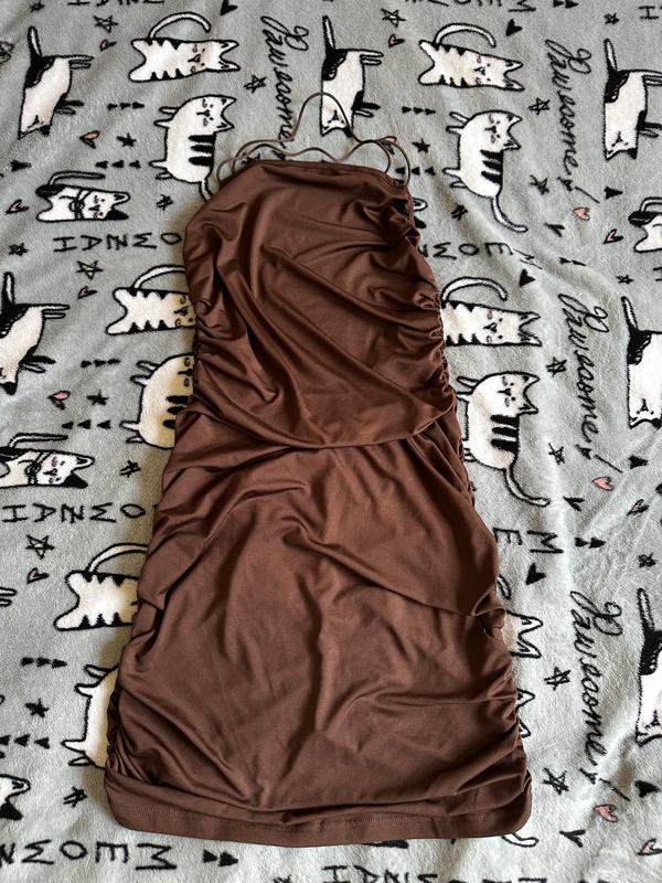 Шоколадна сукня в ідеальному стані, оголена спина, добре тягнеться, ідеальна підійде на розмір XXS/XS, на дівчинку зростом до 160 см, інакше буде закоротка