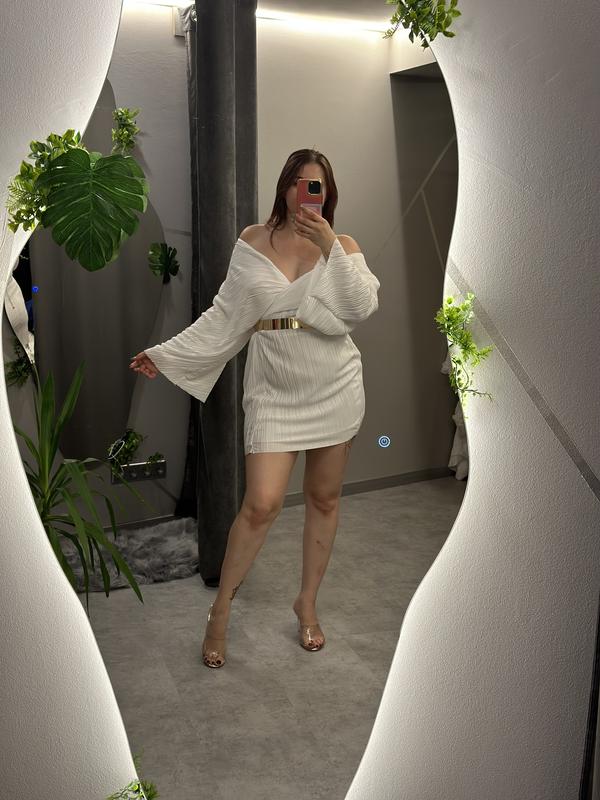 Шикарное платье с широкими рукавами, ткань типо плиссе очень нежная и приятная к телу, на подкладе. Хорошо тянется. Параметры на фото: рост 168 см, 110/77/106