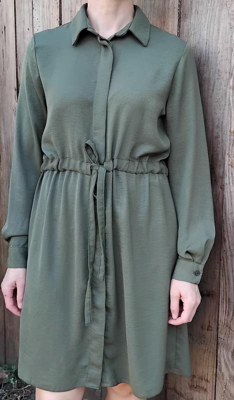 Платье-рубашка, платье-рубашка с поясом, цвет хаки