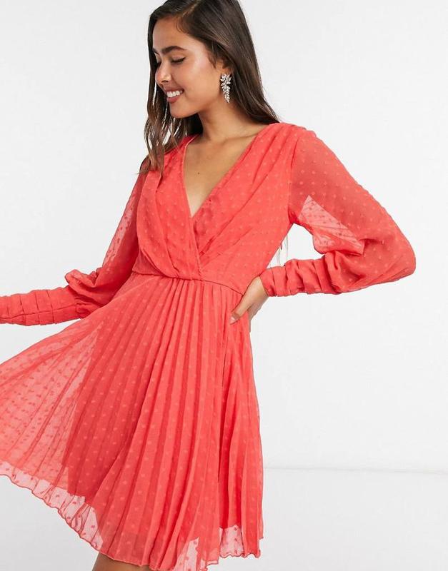 Красно-оранжевое платье с плиссеровкой. Застегивается на скрытый замочек сбоку Бренд Asos Размер UK 10 S-M