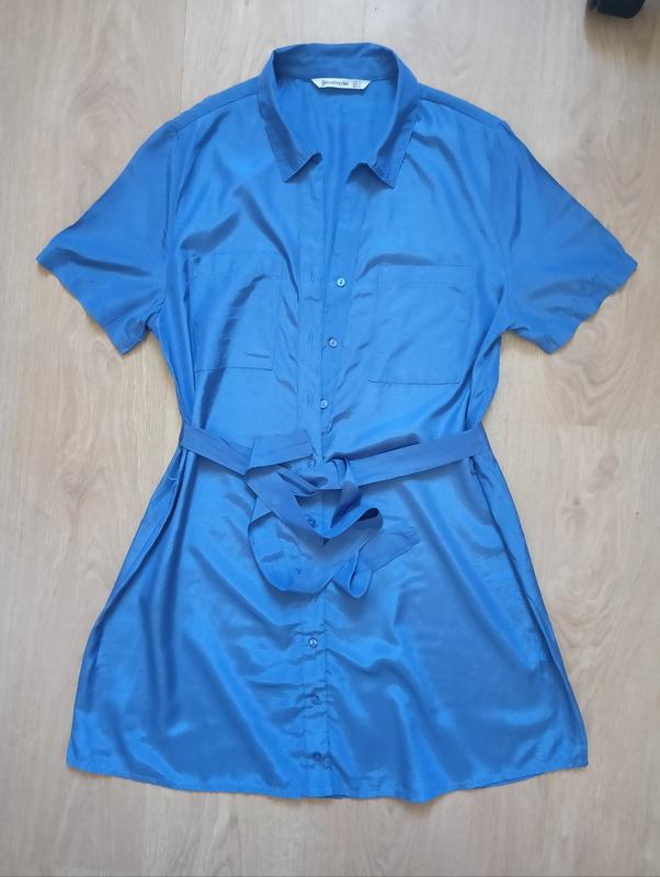 Короткое летнее платье. Синего цвета, На фото чуточку светлее издается. На пуговицах и под поясок. длина 75 полу охват 43
