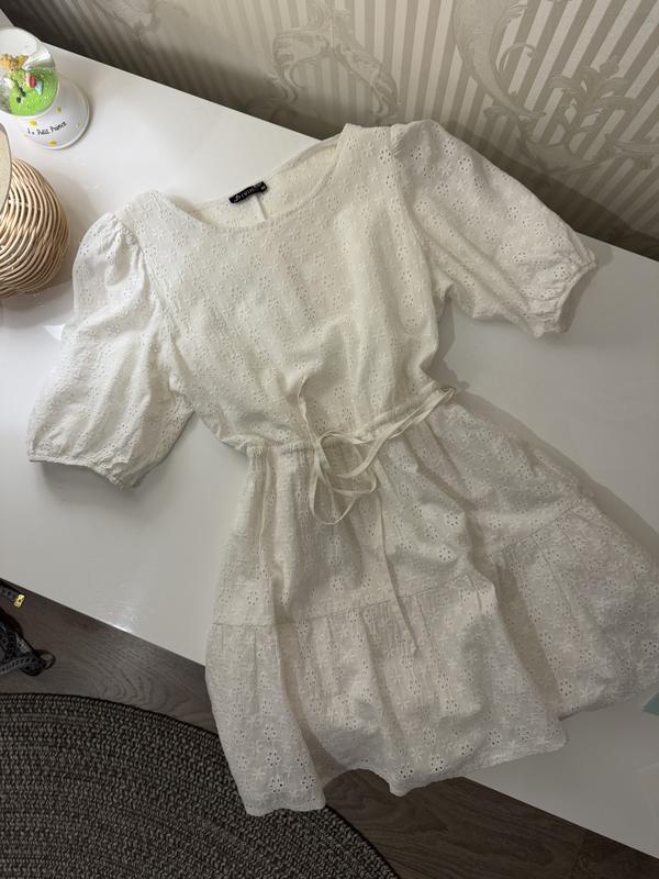 👗 Продаю свое белое хлопковое платье 🤍 Ажурная, с подкладкой - ничего не просвечивается 🎀 Талия на завязках - можно подтянуть под себя 📏 Размер по бирке - 36 (но фактически XXS–XS) 📐 Длина от плеча - 69 см ✨ Идеальное состояние, без каких-либо нюансов