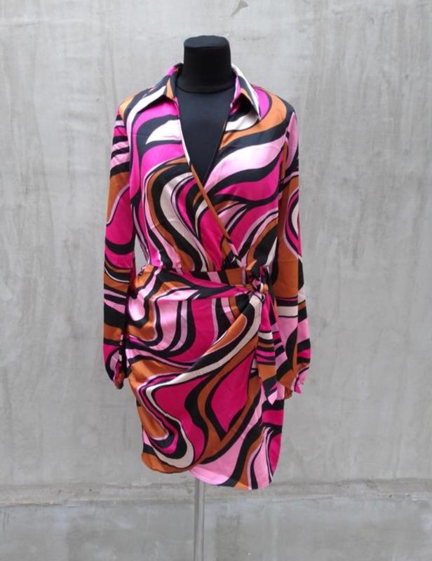 Платье New look на изображении яркие абстракты узор и фасон на запах. Размер M/L