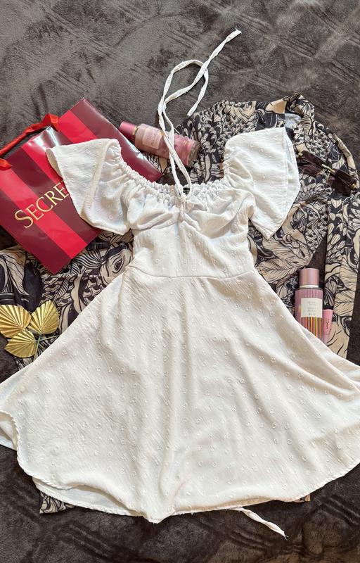 Сукня біла на завʼязках в ідеальному стані стягується на любу талію,з відкритими плечима.