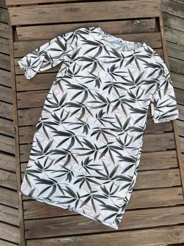 Дуже гарна, легесенька сукня з 100% віскози, з тропічним принтом. Є невеличкі кишені по бокам. Сукня вільного крою. Заміри на фото