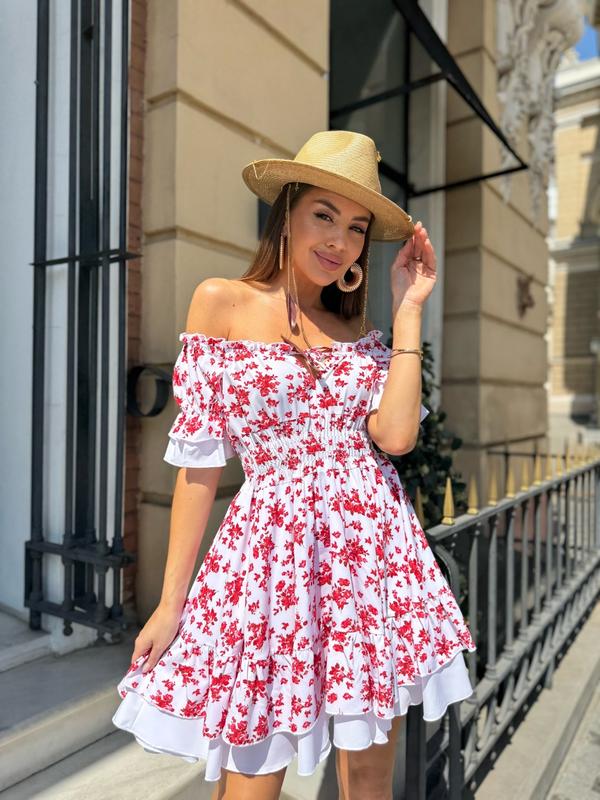 Сукня Модель 265 Розмір 42-44, 46-48 Тканина: софт (тканина легка) Кольори: білий з червоною квіточкою, білий з голубою квіточкою, білий з чорною квіточкою Відмінна якість🔥 Сукня на зав'язках, на поясі резинка, що дає змогу регулювати на будь яку фігуру. Це ідеальна модель.