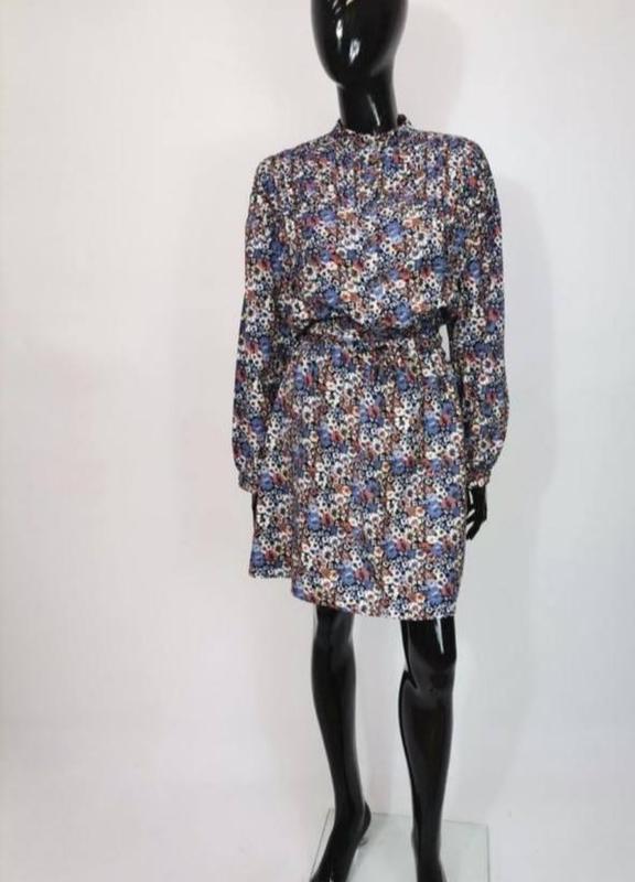 Платье короткий размер XL, лучше L, в составе вискоза и коттон, длина 90см., полуобхват груди 60см., полуобхват талии 40см.( на резинке), длина рукава от горловины 73см. Стан нового.