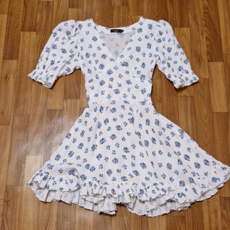 Легкое летнее платье из дышащей ткани в составе хлопок. Рукава фонарики, платье приталенное, сбоку молния. размер подходит как на М так и на легкую L. Снизу пышный клеш! Очень красивое!