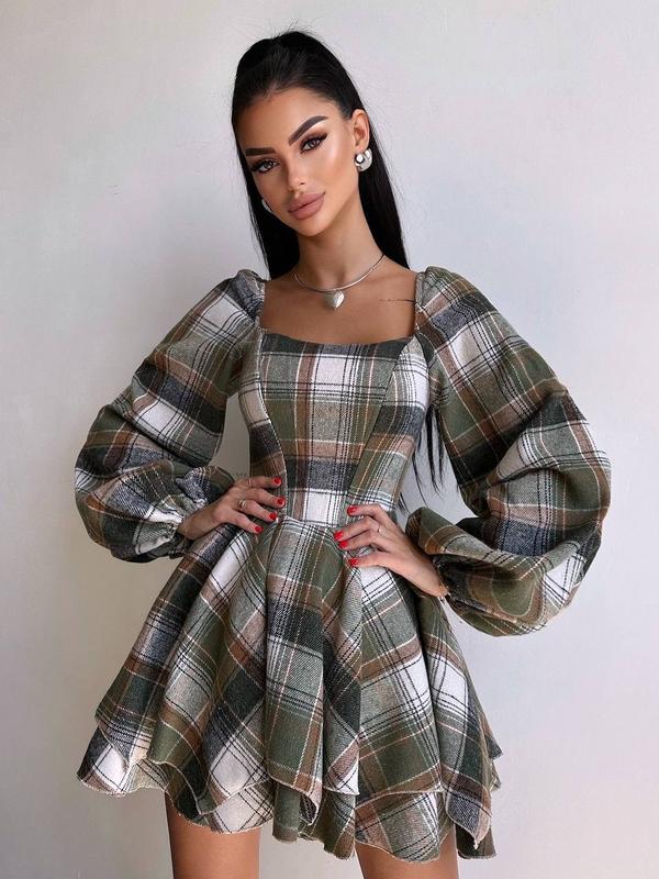🍂 Корсетна сукня з подвійною спідницею та об’ємними рукавами у клітинку — стильна, тепла й неймовірно жіночна 💫 🪡 Тканина: байка клітинка 📏 Розміри: S, M (L +200 грн) 💰 Ціна: 2080 грн