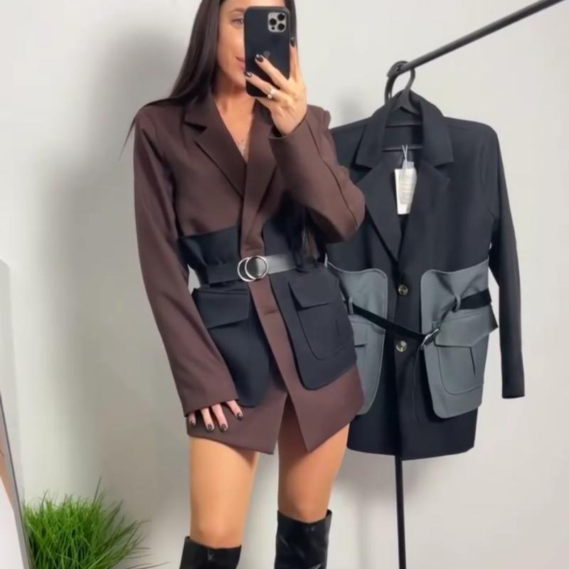 🔝🔝🔝НОВИНКА🔝🔝🔝 Платье пиджака на подкладке, с поясом Уже в наличии ▪Модель : 133@3 ▪1450 грн ▪Ткань: тиар костюмный ▪Цвет: черный и шоколад ▪Размер: 42-44,46-48, 50-52,54-56