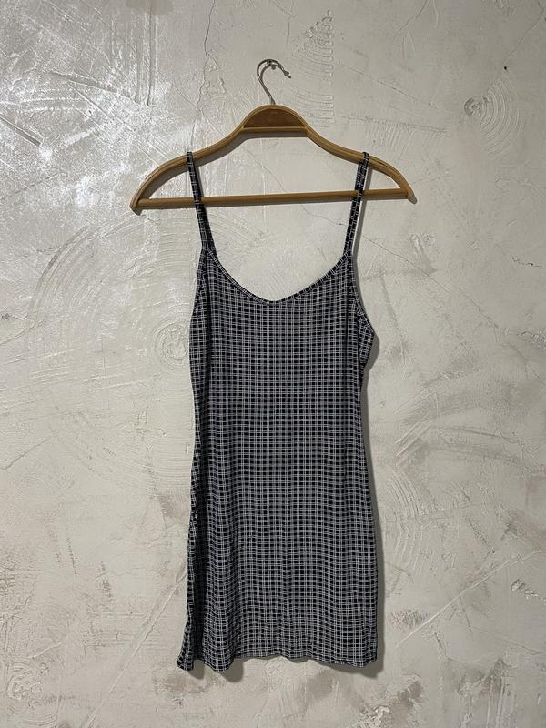 Міні сукня в клітинку, розмір S. На бретелях, приталений силует. Матеріал легкий, зручний у носінні. Стан відмінний, без плям і пошкоджень.