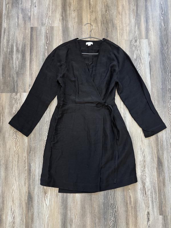 Платье на запах бренда ARKET. Идеальное состояние, без нюансов. Размер, 44, L. Состав: 53% вискоза, 41% лен. Цвет черный. Замеры: длина 94 см, пог 51,5 см, пот 44 см можно регулировать обьем, поб 56 +-. плечи спущенные, рукав от горловины 70 см.