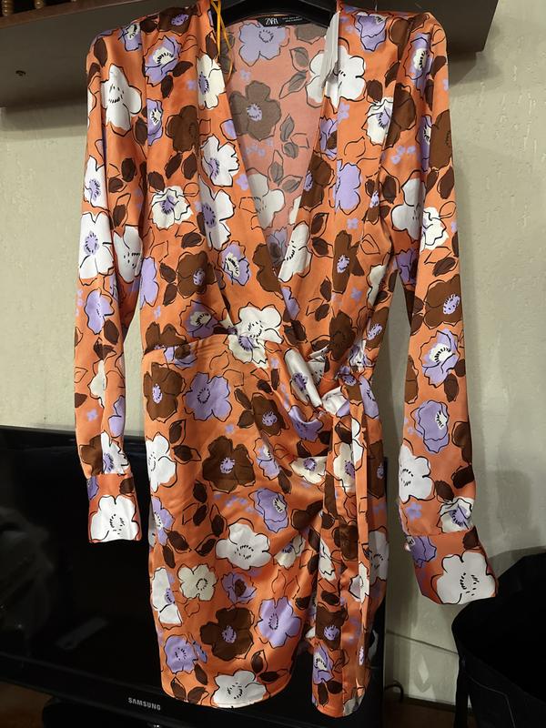 Платье Зара размер s на запах ткань полиэстер