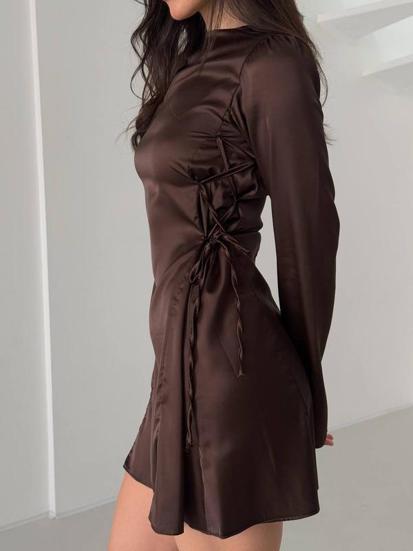 Элегантное мини платье-мини вечернее праздничное манжеты разрезы шелк шнуровка по бокам