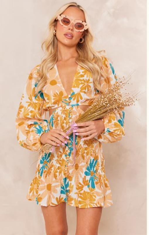 Актуальное цветочное платье в составе лен повседневная тренд plt