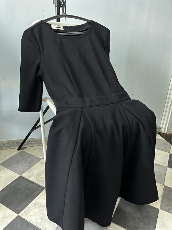 Стан нової речі Тканина щільна, тягнеться, тримає форму Колір чорний На спині застібка блискавка Розмір it 42 Довжина 91 см Пог 43 см до 54 см Стегна вільного крою