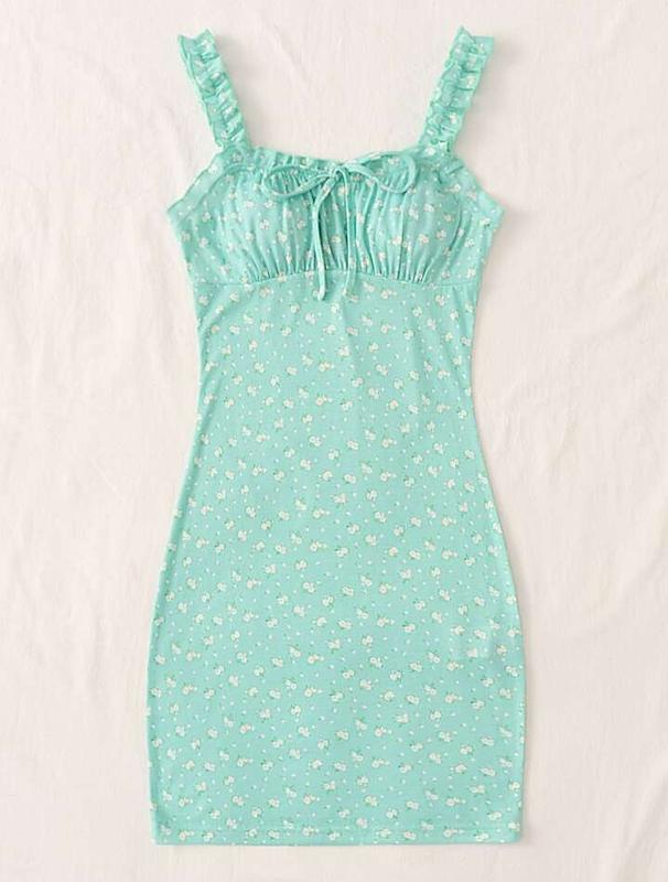 Платье SHEIN Qutie с цветочным принтом, шнурком спереди, рюшами и бюстом
