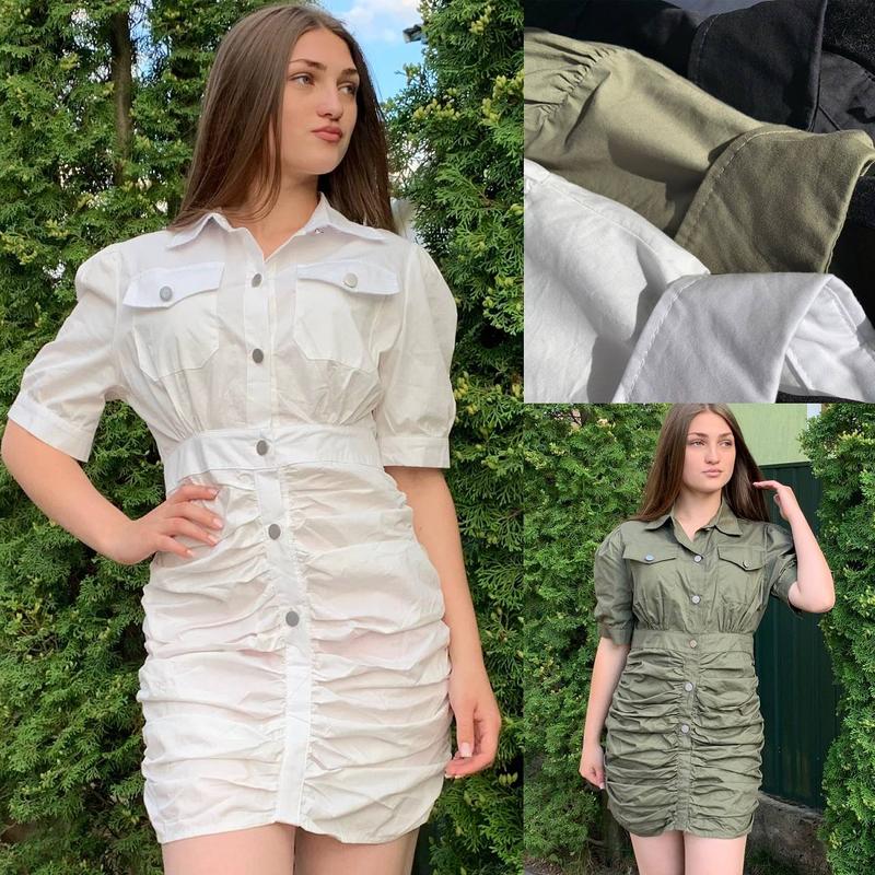 Стильні сукні 🫶🏻 В трьох кольорах: чорний, білий, хакі 🖤🤍💚 Тканина Котон 🌸 Розмір універсальний Пог 52, пот 38, Поб 50, довжина 78см Ціна зі знижкою 350грн🔥🔥🔥