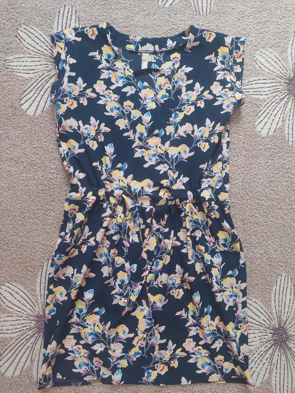 короткое летнее платье темно синего цвета с карманами. на талии поясок, завязывается по фигуре. идеальное состояние. длин-87см об.г.-47см