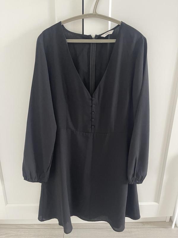 Чорна сукня з довжин рукавом і декоративними ґудзиками