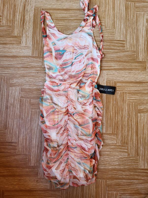 Облегающее платье из сетки, абстрактным принтом, перекрестными рюшами на спине i saw it fi...