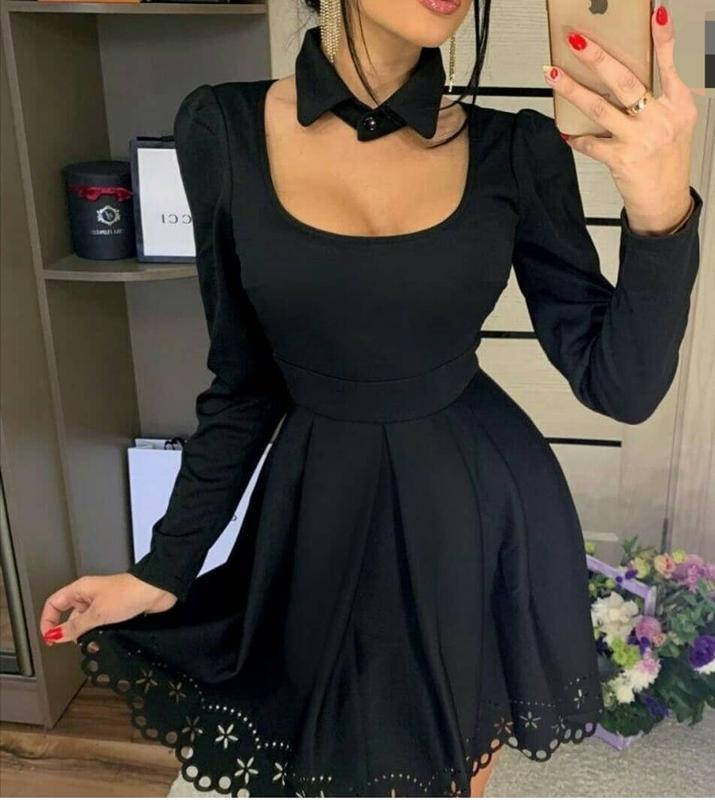 Платье подростковое женское. Стильное платье с воротником - чокером приталенного силуэта. Платье застегивается по спинке на застежку молнию.Комир застегивается на пуговицу. Плотная ткань.Низ платья с перфорацией. Также платье имеет два кармана. Такая модель платья отлично подойдет для школы, для офиса, на каждый день или для праздника. Качество отличное 👌 Состав: 96%polyamide,4%elastan Цвет в наличии: черный Размер в наличии: XS, S, М Замеры XS Ширина по плечам 35 см Ширина по комди 39 см Ширина по талии 32 см Длина рукава 61 см Длина платья 82 см S Ширина по плечам 36 см Ширина по комди 40 см Ширина по талии 34 см Длина рукава 61 см Длина платья 83 см М Ширина по плечам 36 см Ширина по груди 41 см Ширина по талии 36 см Длина рукава 63 см Длина платья 83 см