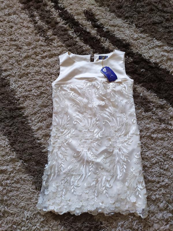 новичка прямое платье,р.S, колеру айвери, с интересной аппликацией, замеры по запросу