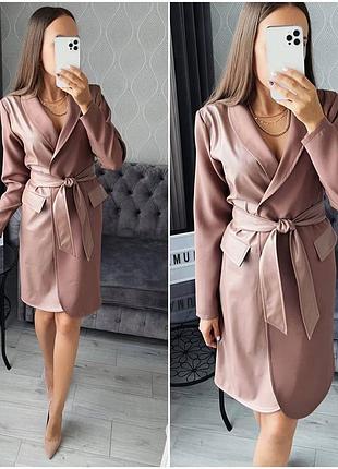 Сукня Размеры 42-44, 46-48 -765 грн Размеры 50-52, 54-56 -785 грн Невероятно стильное платье-пиджак выполнено в комбинации костюмной ткани и экокожи. Фабричное качество, полностью закрытые передние полочки платья (внутренняя часть выполнена из костюма, то есть в качестве подкладки у пиджака). Внутри платье на завязке, что даст вам уверенность в носке. Декоративные клапаны выполнены из экокожи, карманы отсутствуют. Спинка выполнена из костюмки. В комплекте идет кожаный пояс