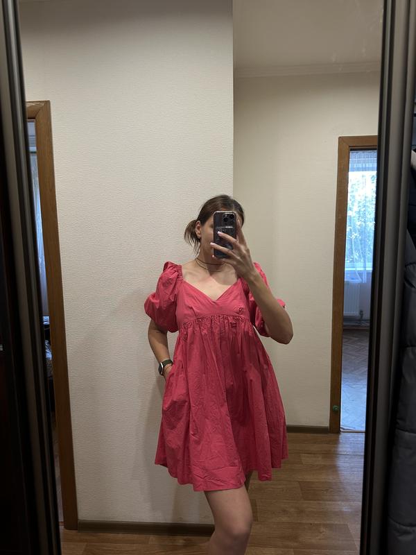 Коротка рожева сукня вільного крою з карманчиками, одягнена декілька разів. ОГ 86см ОТ 90см (вільна)