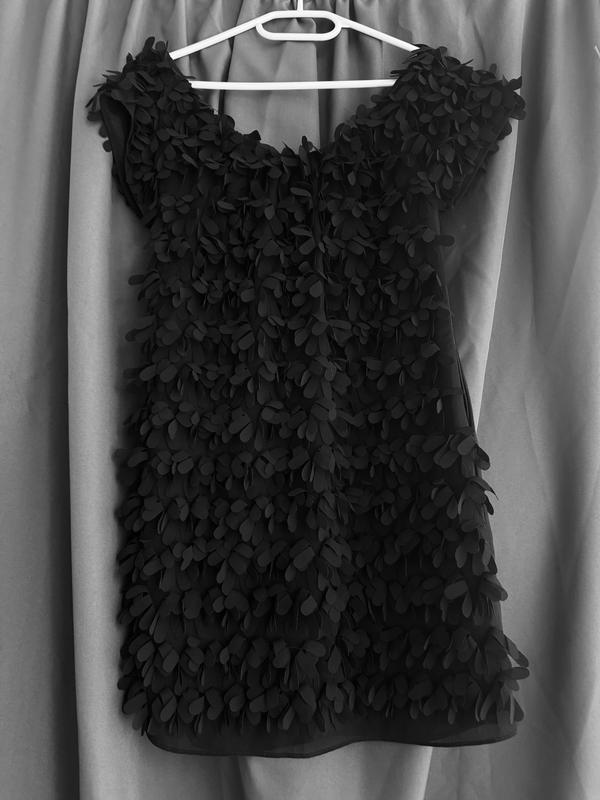 Неймовірна, коктейльна сукня. Ефектна, жіночна, вражаюча. Довжина міні, рукава можна спустити, можна зробити на плечах. Італійський бренд, італійський дизайнер. Купувалась на подію, але не одягалась. Підійде на випускний, на корпоратив, на свято. Чорна, перед в оброках квітів, ззаду чиста