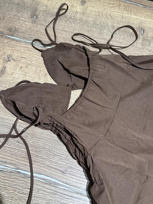 Нова сукня, класного шоколадного кольору, не підійшов розмір Йде на повний 42 розмір та зріст від 160 до 175 см На талії йдуть резинки, які роблять акцент на талії