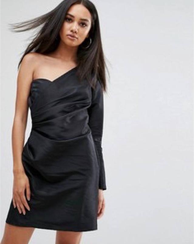 Чорна коротка коктейльна святкова сукня , на одне плече , С розмір